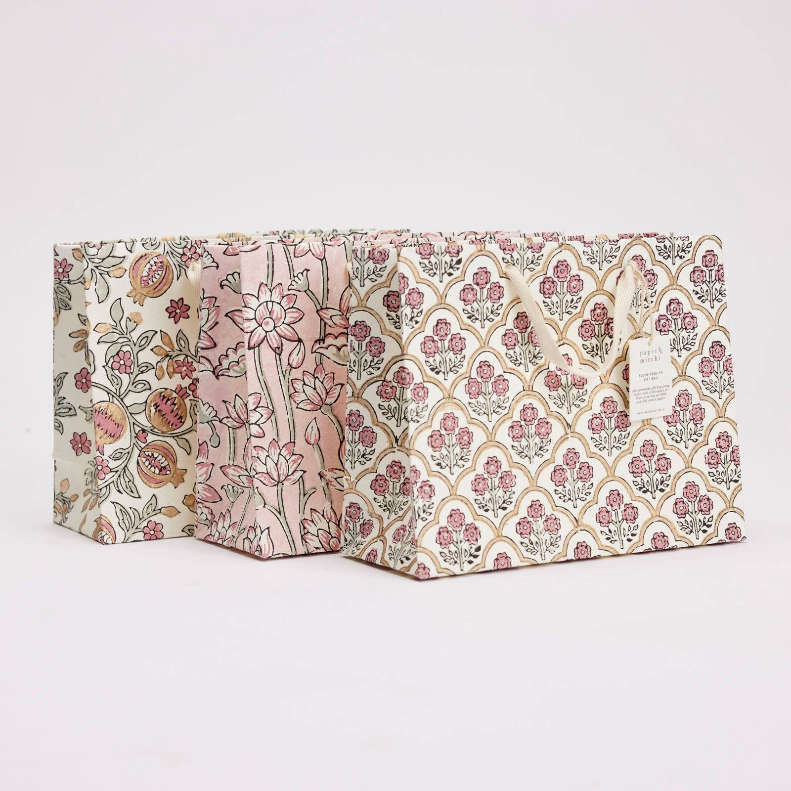Hand Block Printed Gift Bags (Medium) - Pink Earth