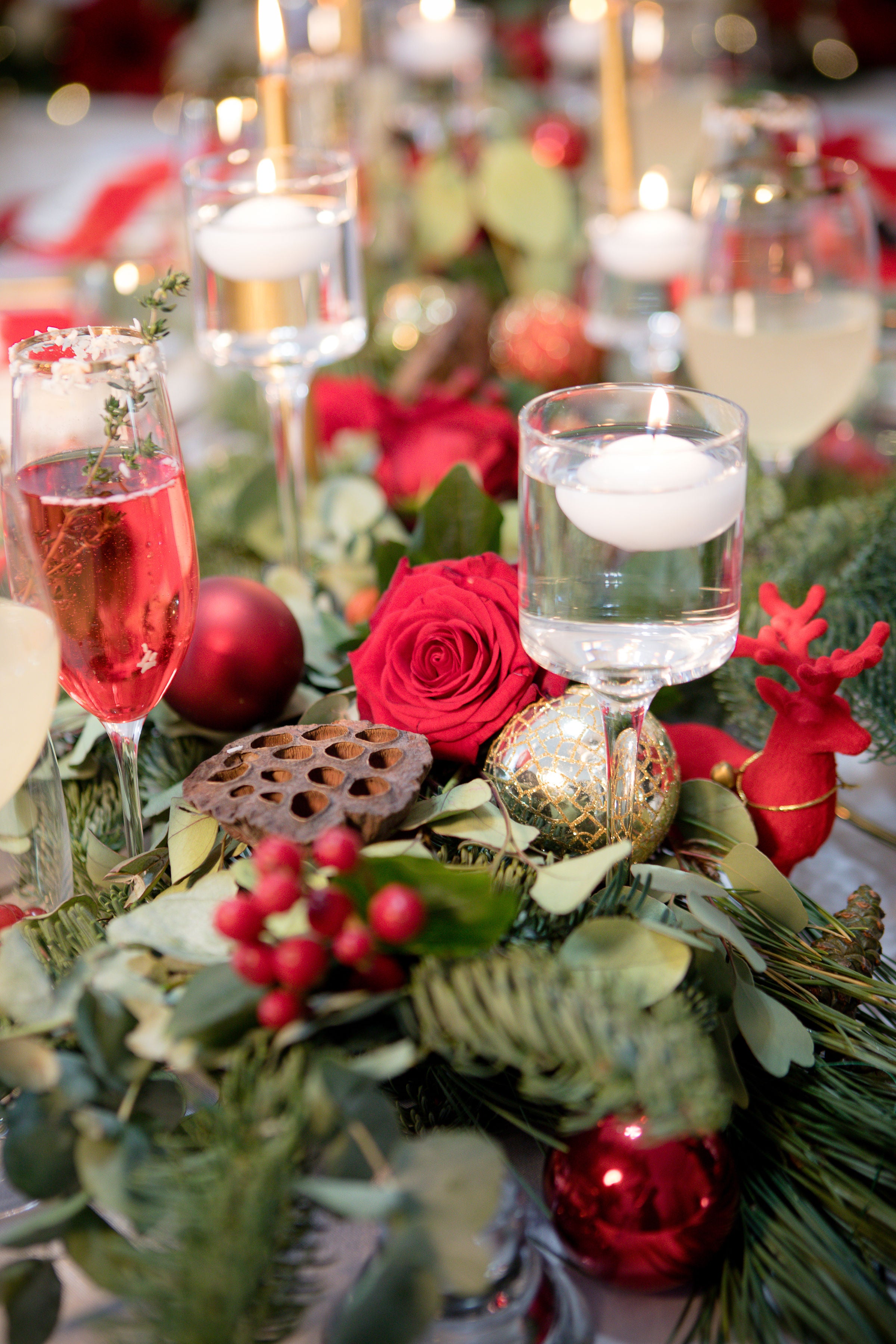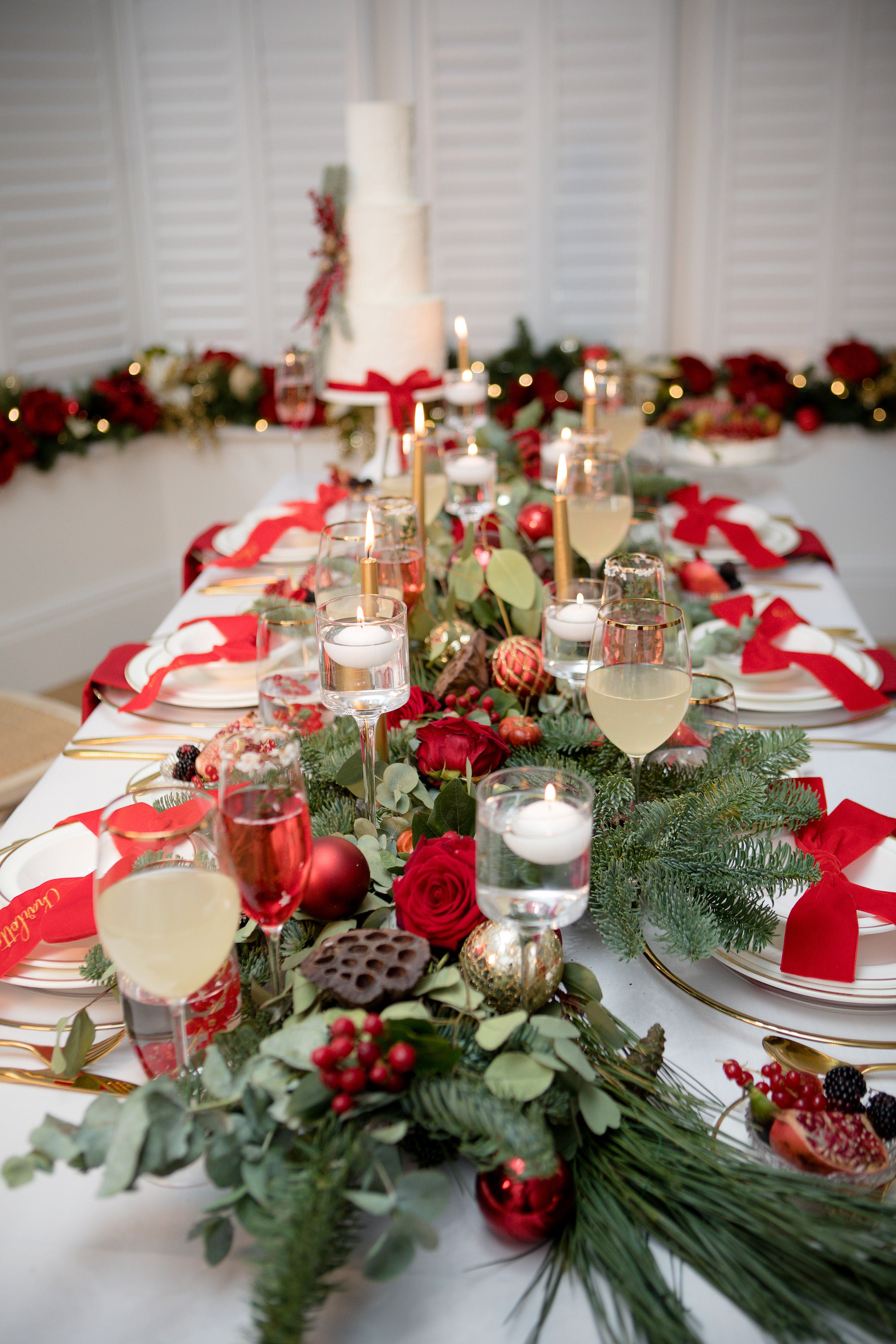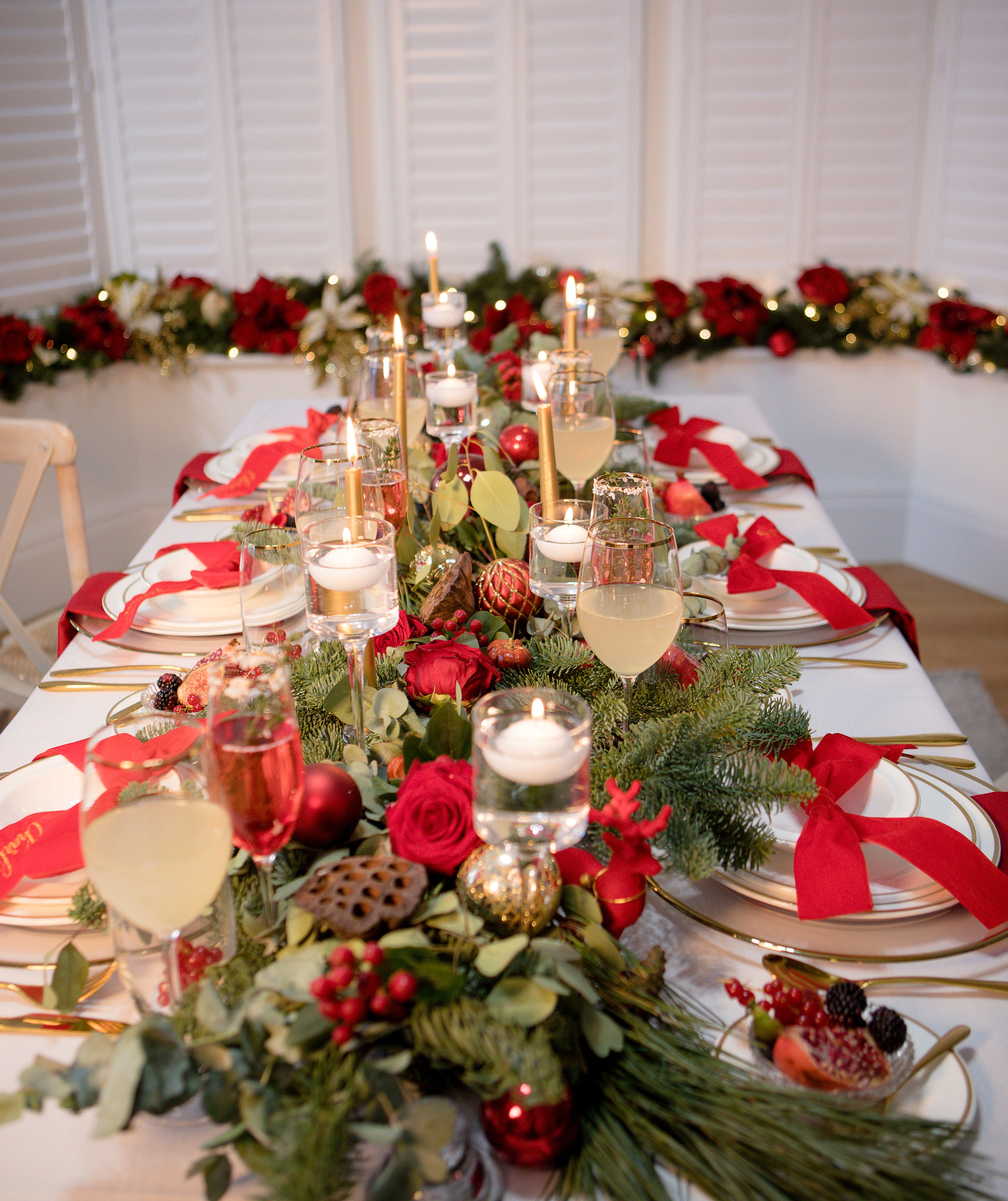 Red Rose Table Garland | Fresh Christmas Table Arrangement