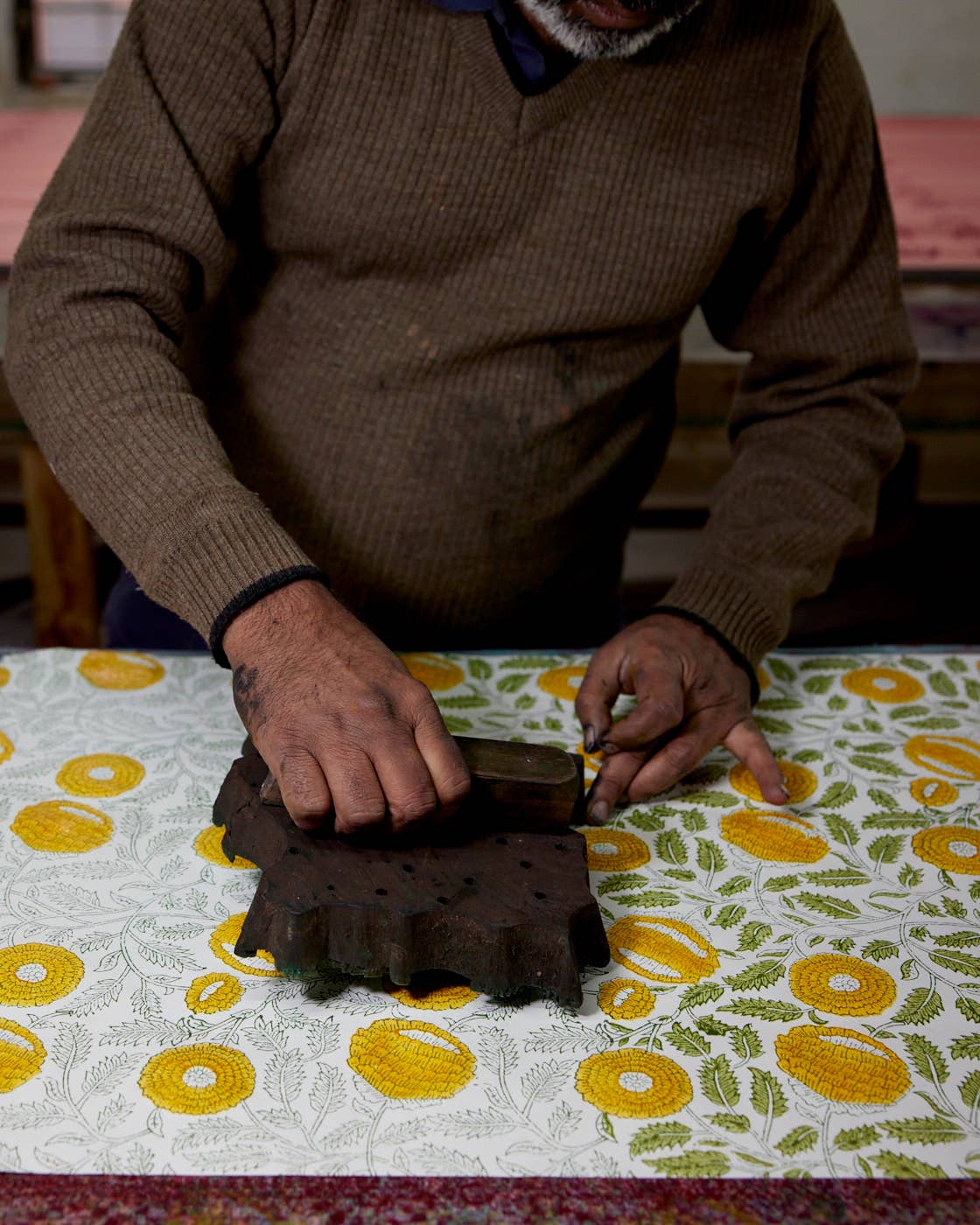 Block Printed Wrapping Paper Sheet -Marigold Glitz Sunshine