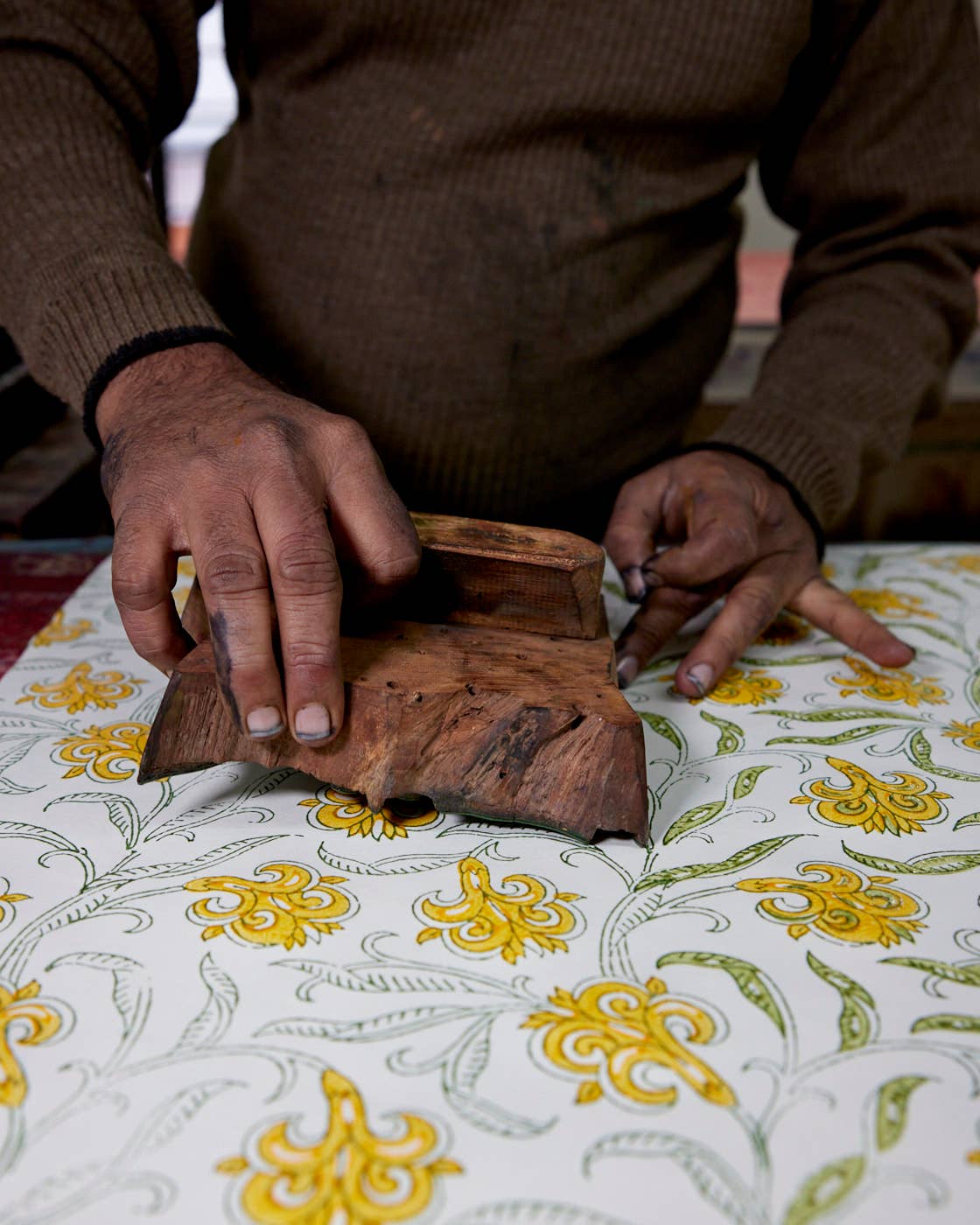 Our hand block printed gift bags are made from a strong 250gsm recycled cotton card paper in colours and designs complementing the gift wrap range. The bags are block printed using traditional techniques, and are not digitally mass produced. The cotton rope handles enhance the artisanal look of the bags and the matching swing tag carries a short blurb about the story behind the bag.