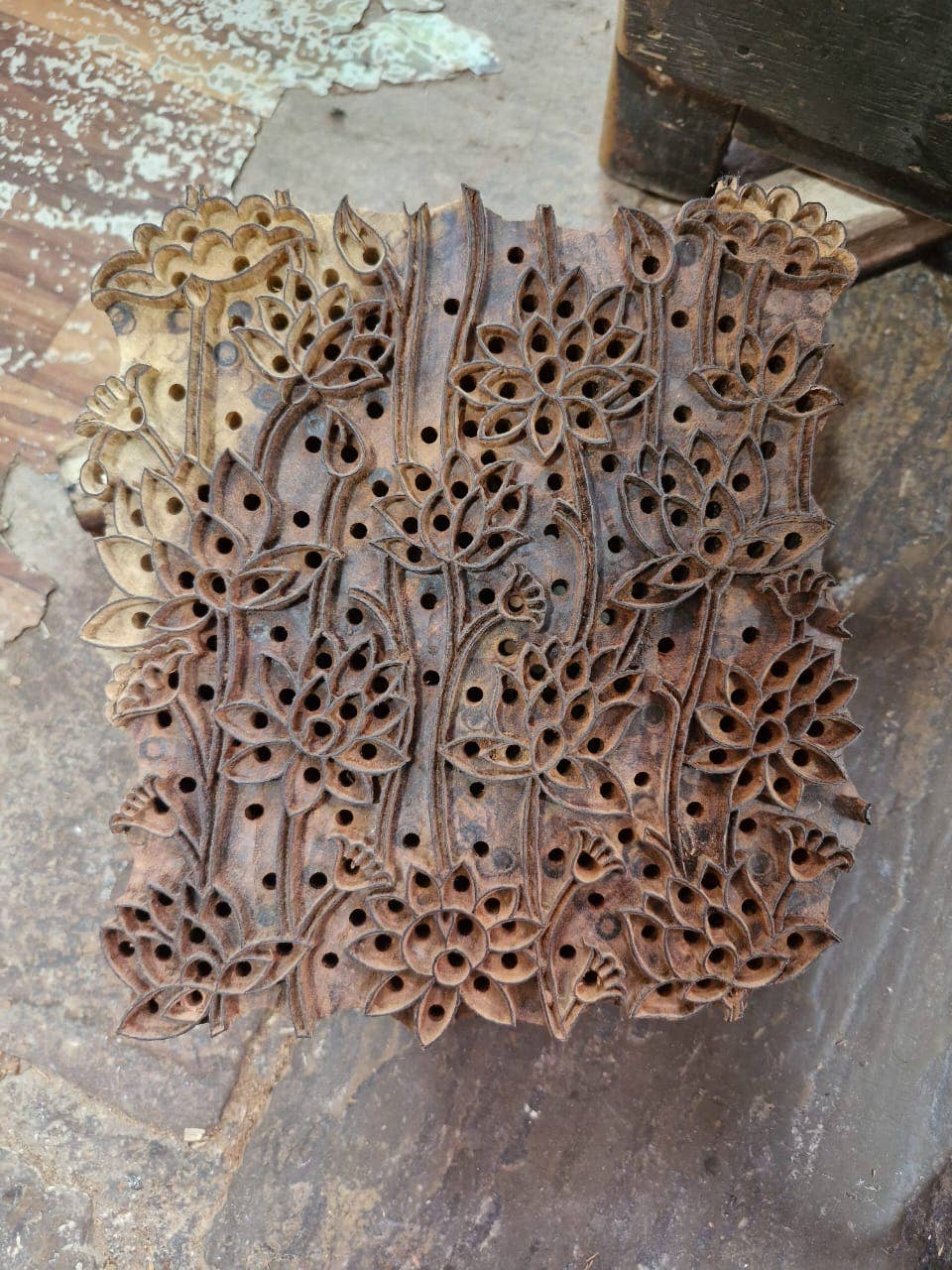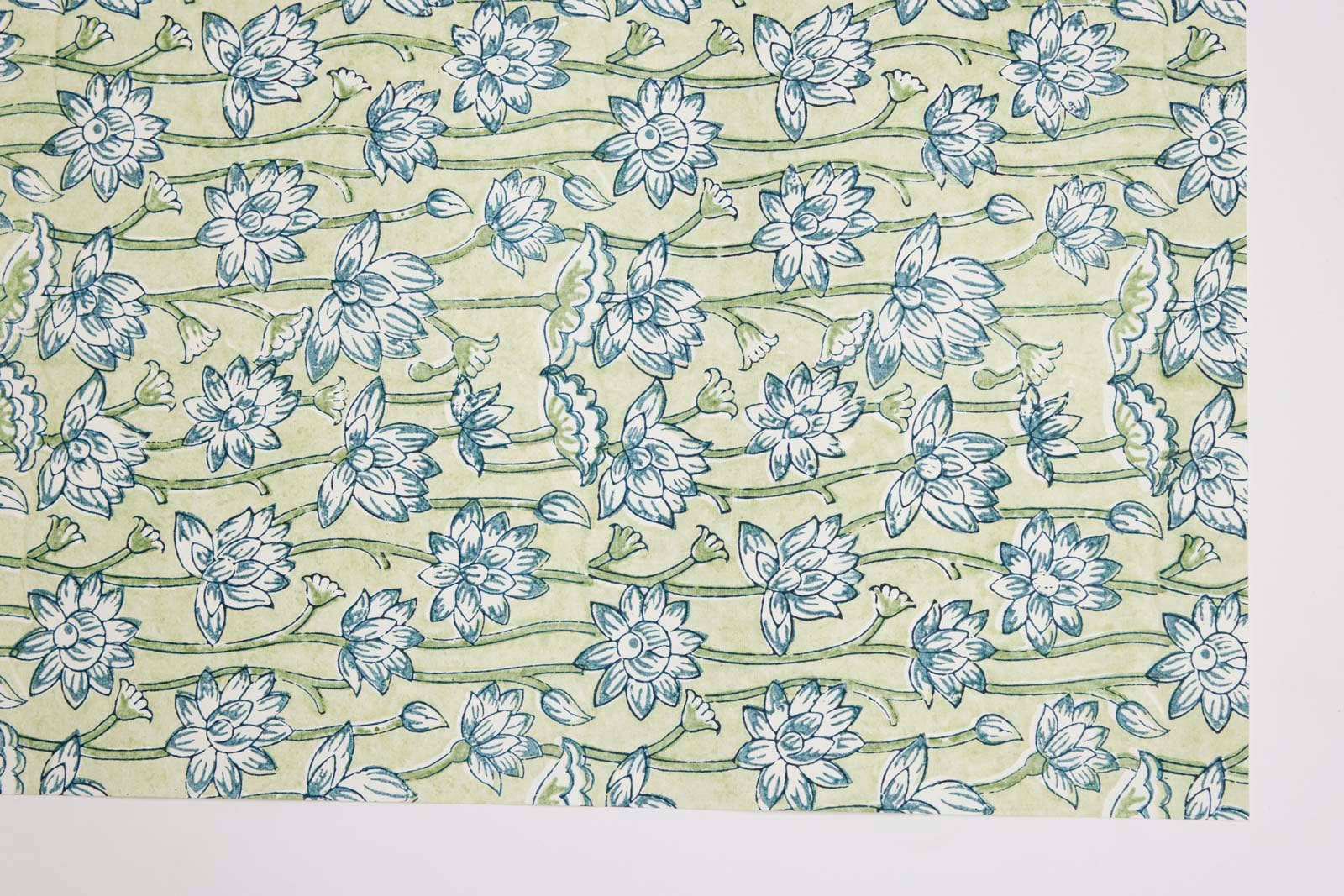 Block Printed Wrapping Paper Sheets - Lotus Indigo
