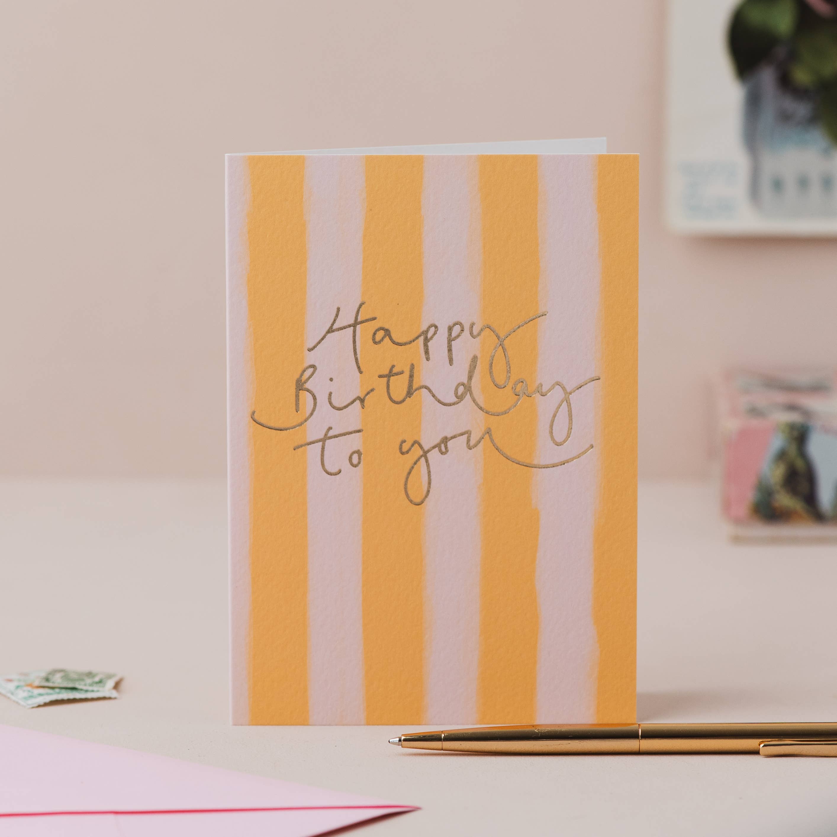 'Happy Birthday to You' Mustard Stripe + Rose Gold Foil Card: Cellophane