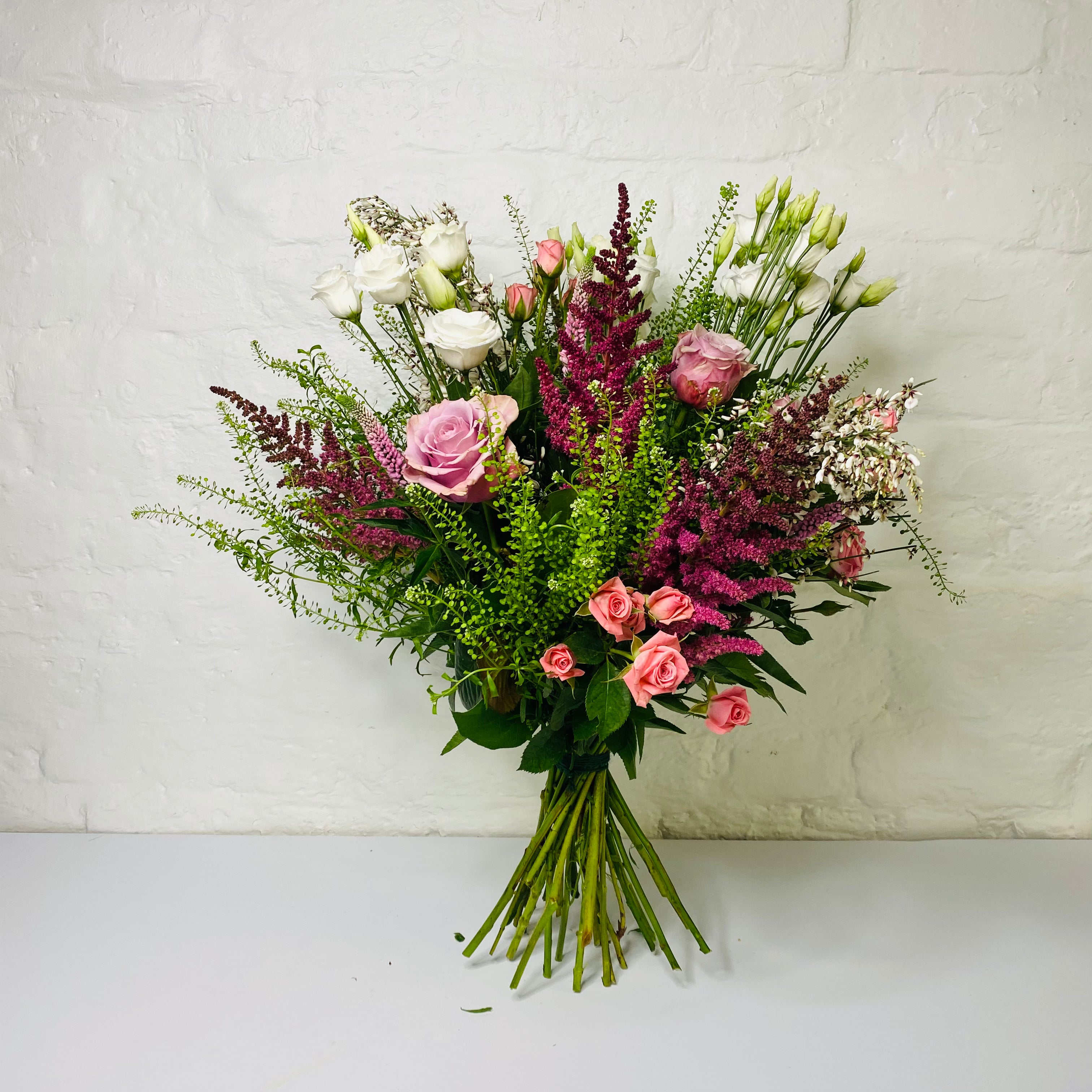 Pink Lady is a handtied bouquet of beautiful textural flowers, in a pink & white colour palette.